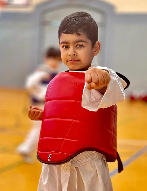 Hierbei handelt es sich um einen Kampf gegen einen realen Gegner, der nach strengen sportlichen Regeln als Vollkontakt (WTF) und Leichtkontakt (ITF) ausgetragen wird. Von jedem Wettkämpfer ist die vorgeschriebene Schutzausrüstung (Tiefschutz, Kopfschutz, Mundschutz, Kampfweste, Schienbein- und Unterarmschutz), zu tragen. Beide Kämpfer werden anhand der Farbe auf ihren Schutzwesten unterschieden - Blau (chong) und Rot (hong). Gekämpft wird auf einer Wettkampffläche mit den Außenmaßen von 12x12 m und den Innenmaßen von 10x10 m. Der 2m-Abstand zwischen der Kampffläche und der Wettkampffläche wird als Sicherheitszone bezeichnet. An den Eckpunkten der Wettkampffläche befinden sich die Punktrichter, auf der Kampffläche die beiden Wettkämpfer sowie der Kampfleiter. In einem Meter Abstand von der Grenzlinie sind die Coaches der Kämpfer sowie die Jury platziert.